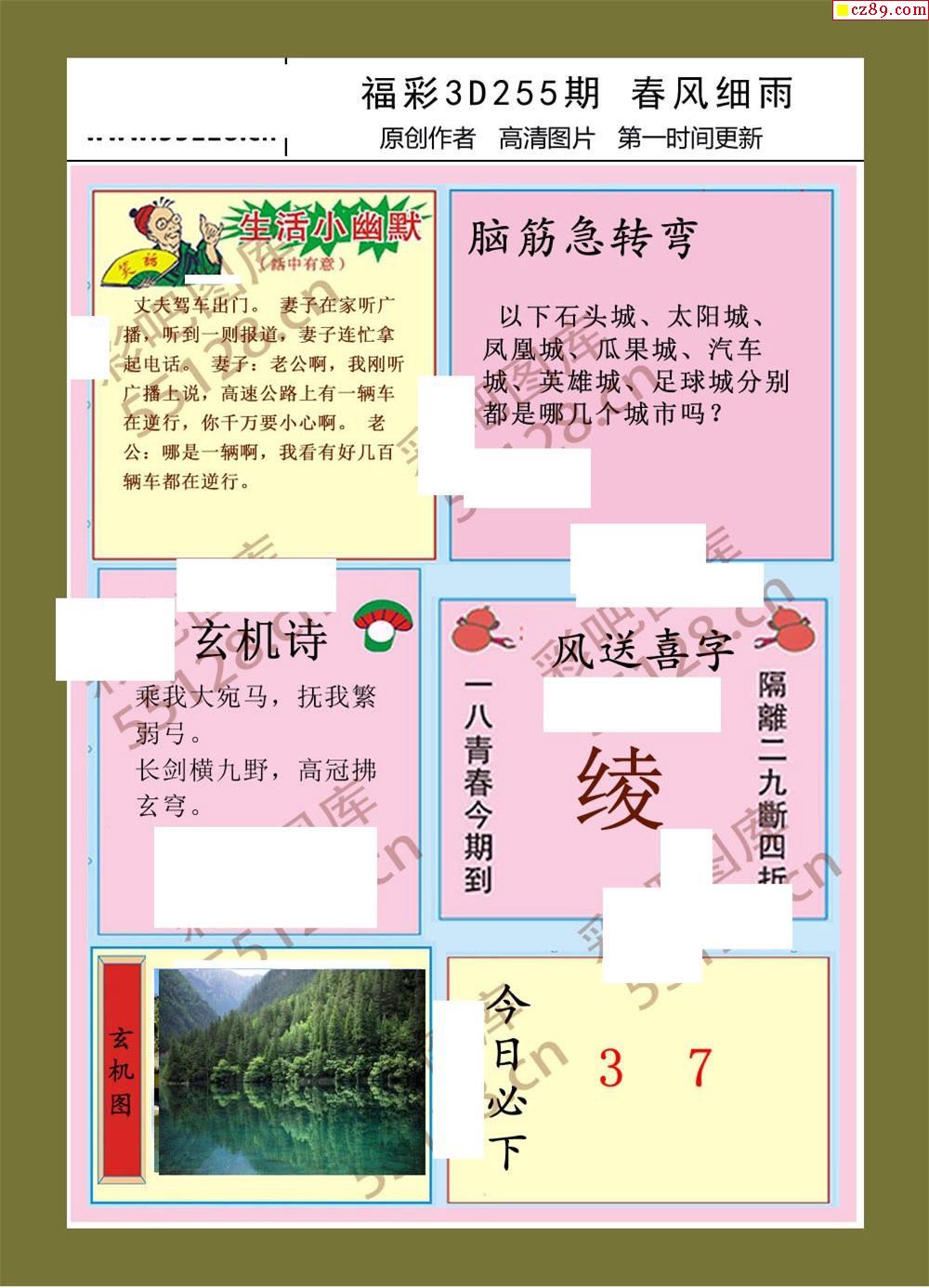 25年255期福彩3d春风细雨画报