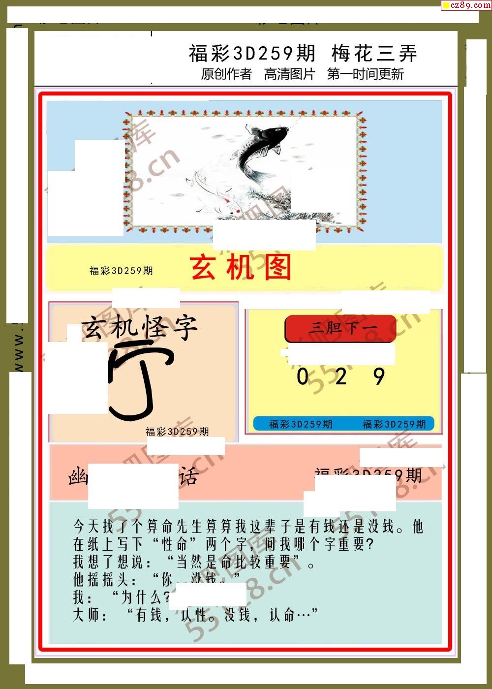 梅花三弄25年259期福彩3d图谜