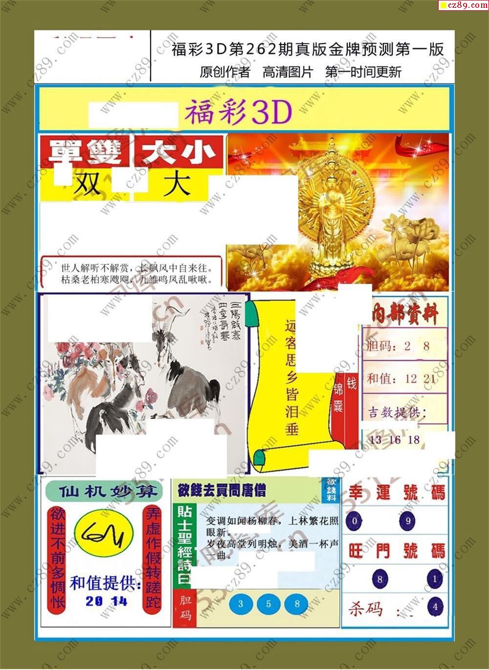 > 25年262期福彩3d真版金牌预测彩报