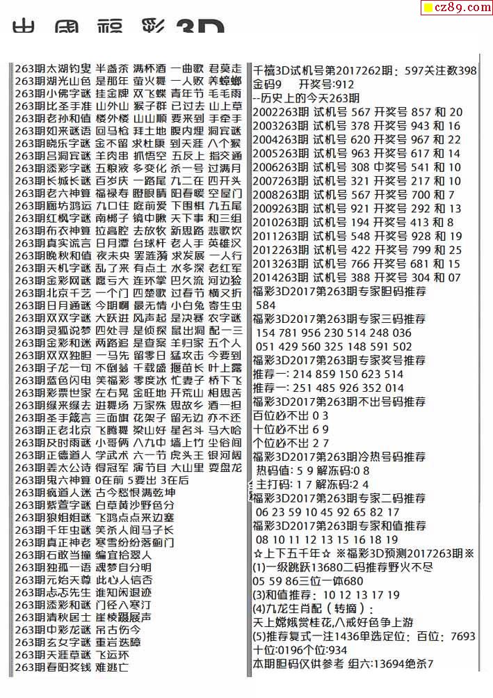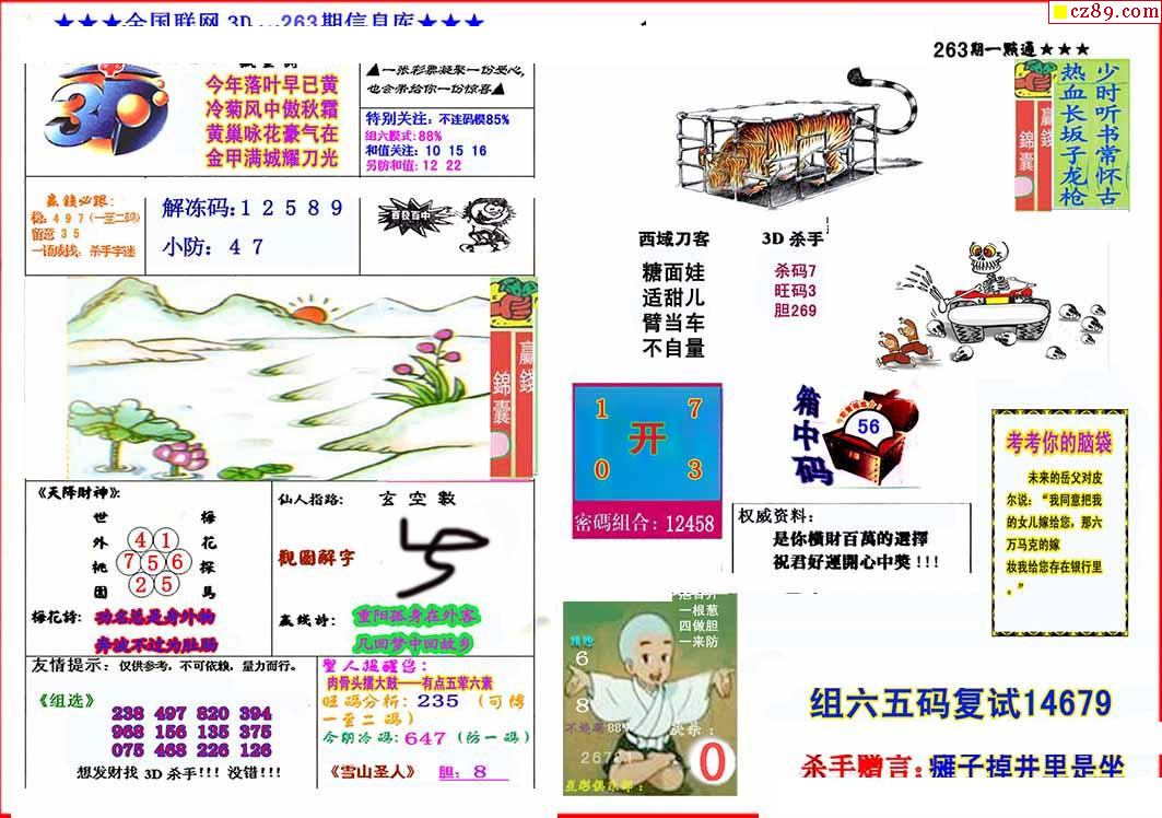 > 杀手+鑫马快报+字迷汇总25年263期3d图谜