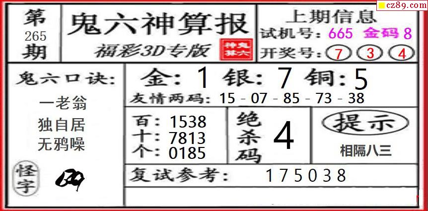> 鬼六神算2025265期3d图谜