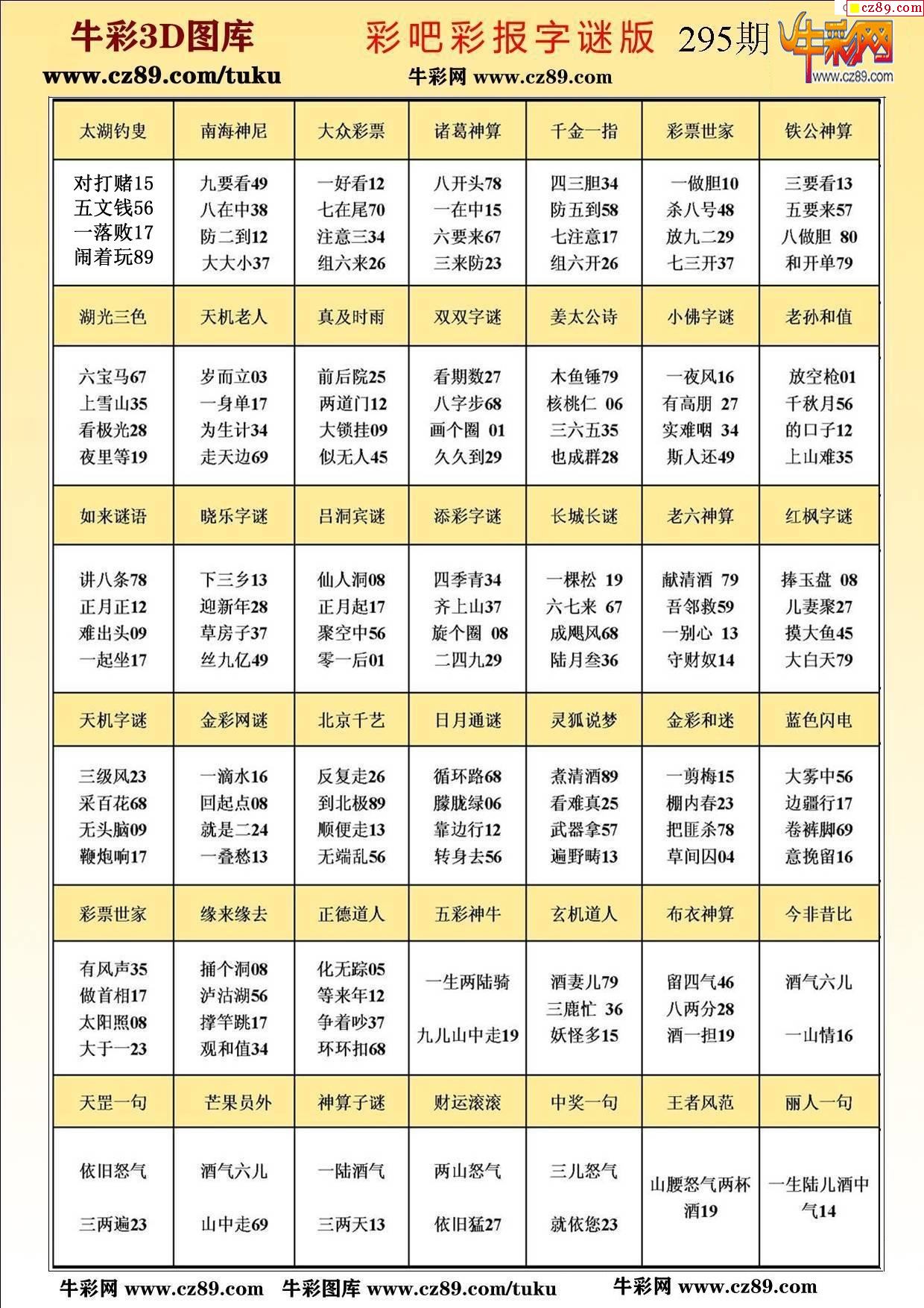 > 牛彩版3D字谜彩报图25年295期打印版