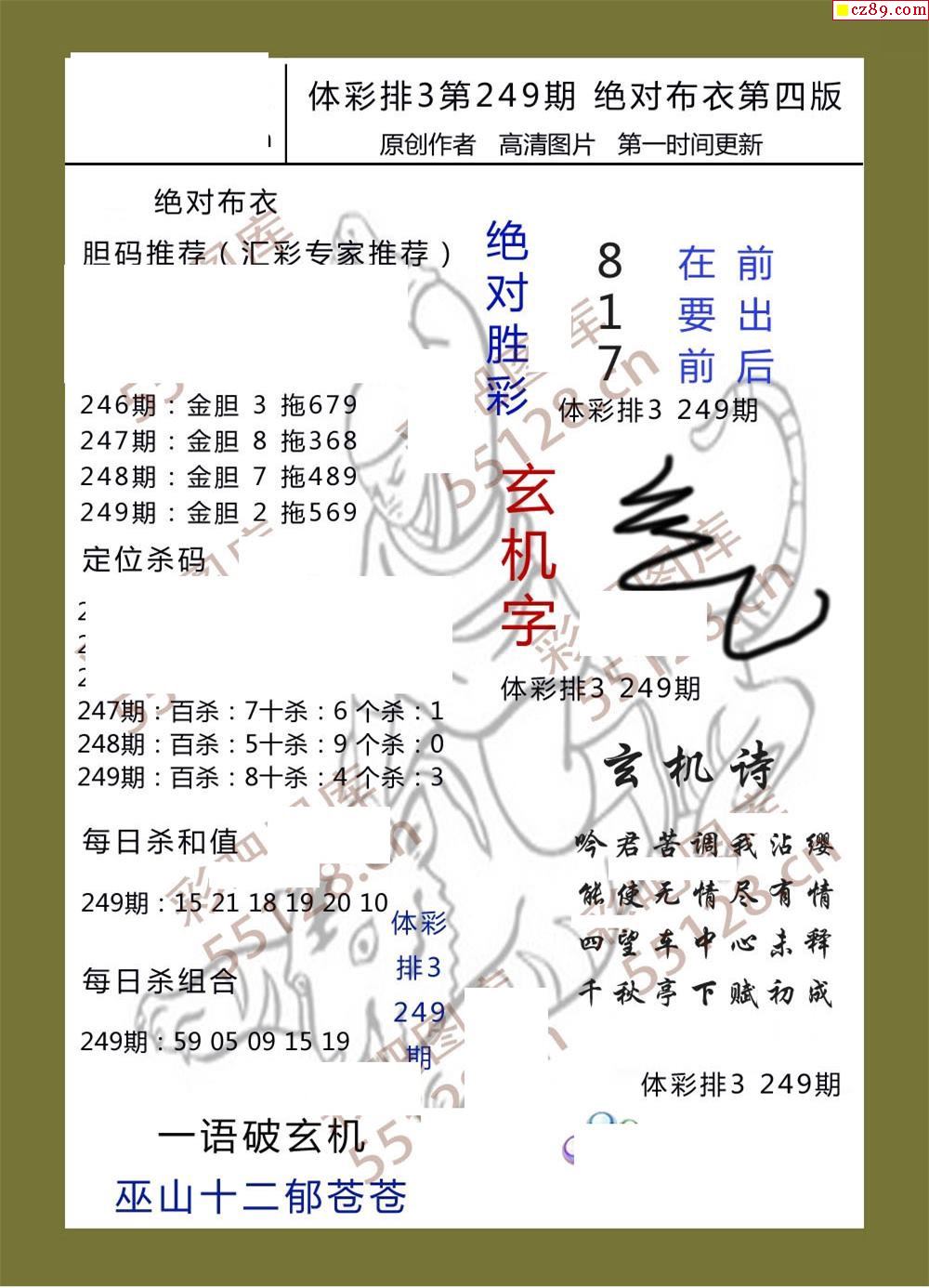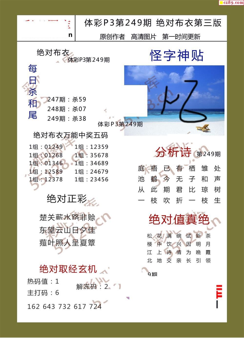 绝对布衣249期体彩p3图谜