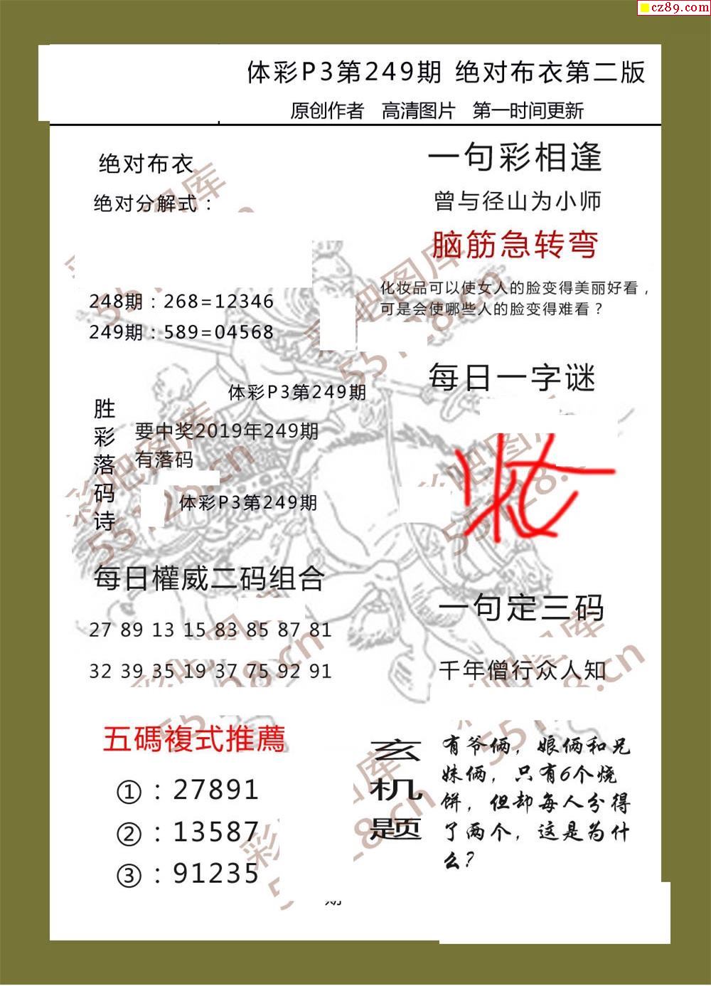 > 绝对布衣249期体彩p3图谜