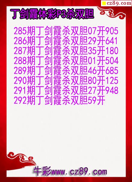 > 25年292期丁剑霞体彩P3杀双胆图