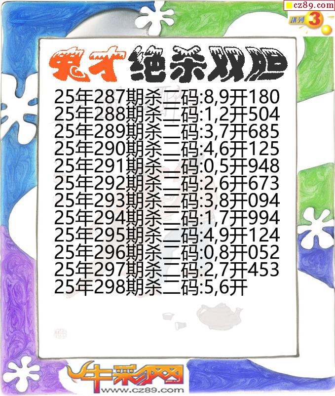 2025年298期体彩P3胆码杀码原创图总汇