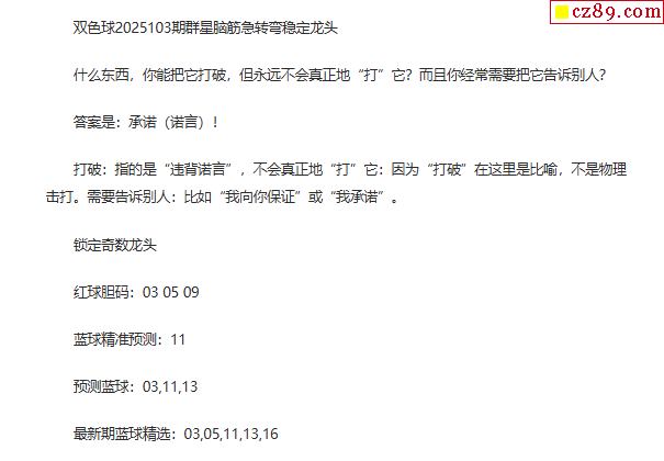 > 25年福彩双色球103期 群星脑筋急转弯定龙头字谜